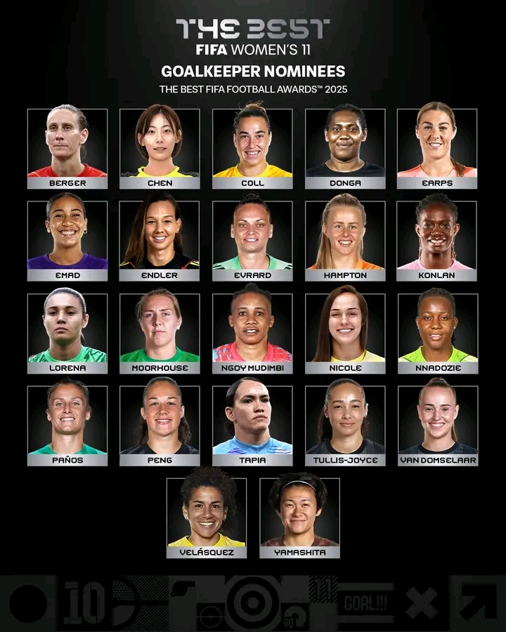 The Super Falcons goalkeeper and African goalkeeper of the year is nominated alongside other prominent goalkeepers in the world like Ann-Katrin Berger (Germany, Gotham FC), Catalina Coll (Spain, Barcelona), Hannah Hampton (England, Chelsea), and Anna Moorehouse (England, Orlando Pride).