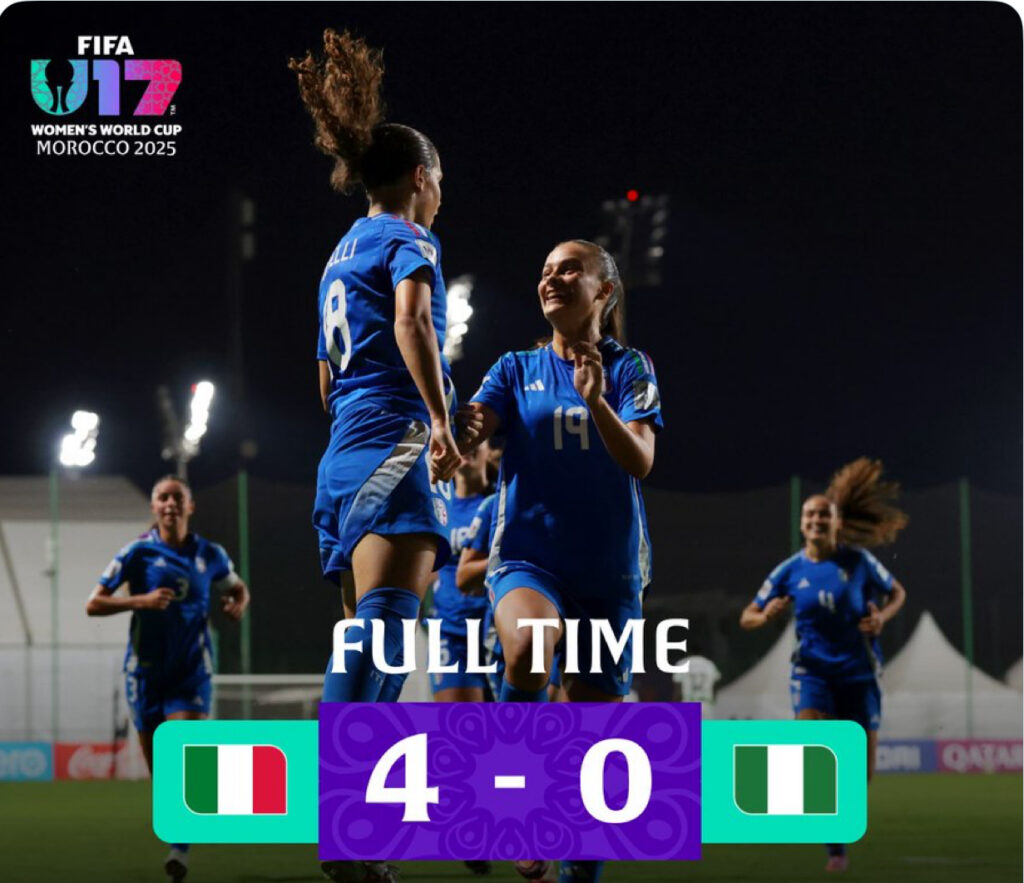 Nigeria’s Flamingos have crashed out of the FIFA U17 Women’s World Cup after a 4-0 loss to Italy in Salle, Morocco.