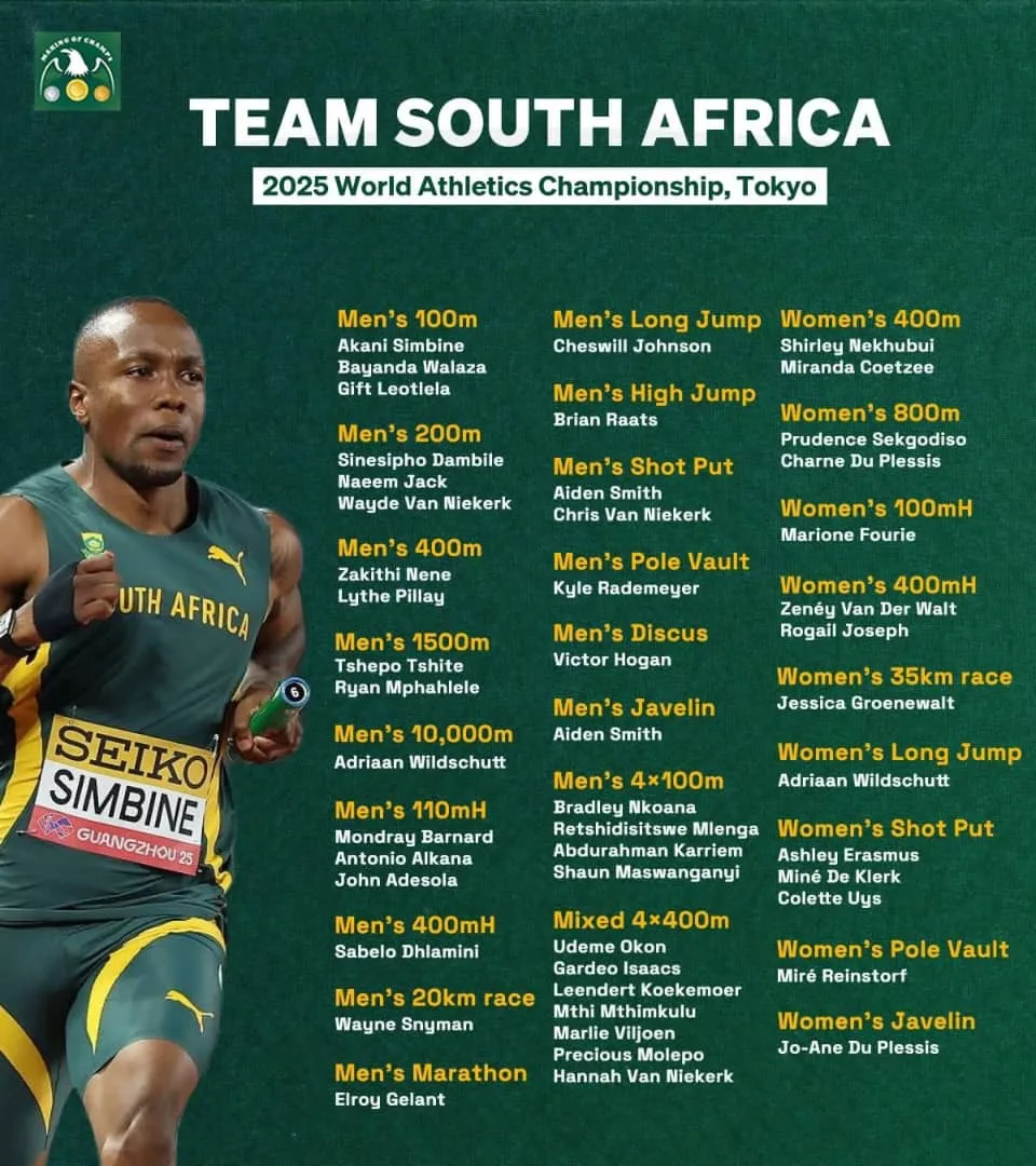 South Africa have unveiled a strong 49-athlete squad for the 2025 World Athletics Championships in Tokyo, with Nigerian-born stars John Adesola and Udeme Okon proudly included.